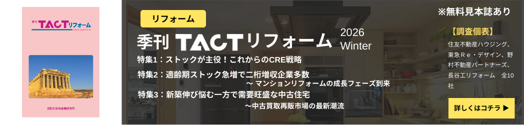 【特集1】リフォームの利益率上昇が続く!~リフォーム会社の24~25年度収益力分析【特集2】店舗増設、業績拡大が加速~リフォーム専業系企業の競争力分析【特集3】都心部中古マンションに潜む商機~~中古億ション買取再販の新潮流【調査個表】アートリフォームほか全10社