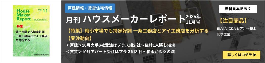 【特集】縮小市場でも持家好調 一条工務店とアイ工務店を分析する【受注動向】戸建:10月大手6社受注はプラス組2社~住林1人勝ち継続