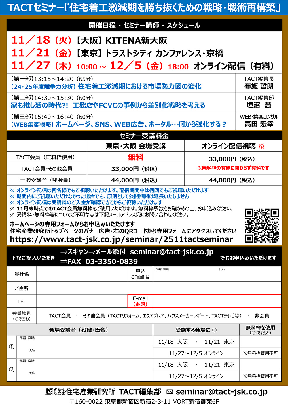 | TACTセミナー(会場受講の場合) | |