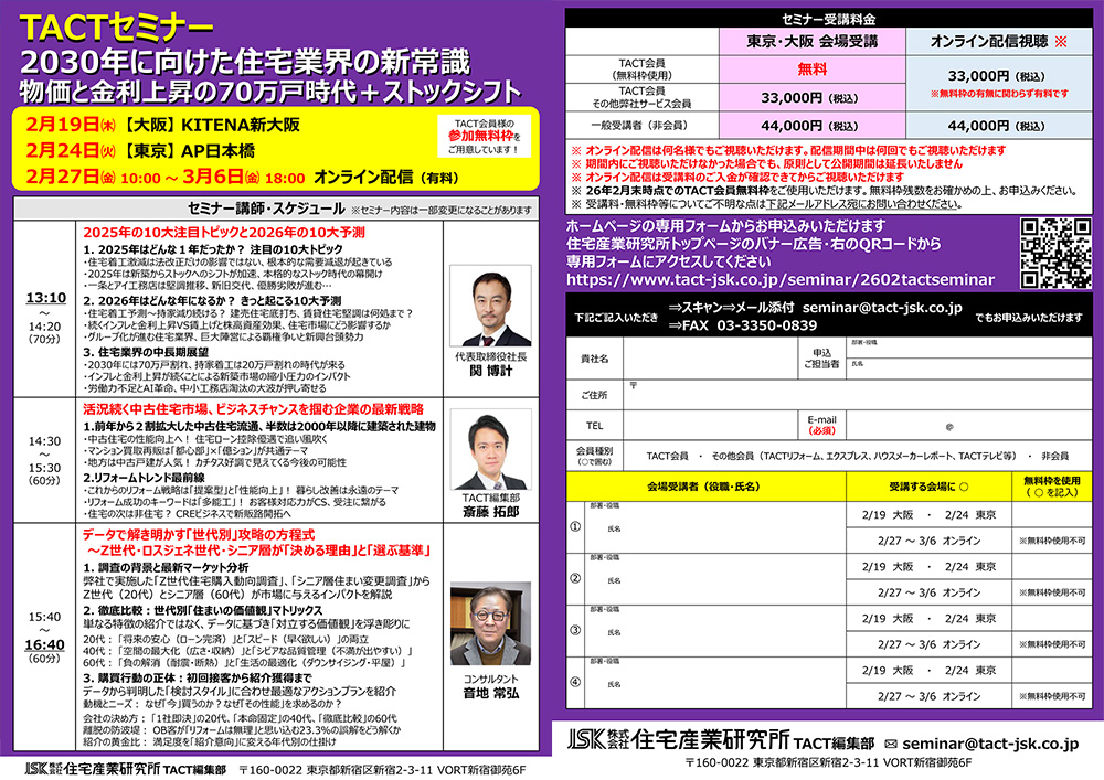 2026年2月TACTセミナー「2030年に向けた住宅業界の新常識」